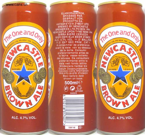 The One and Only NEWCASTLE UPON TYNE NE99 1RA. ELABORADA POR, BRASSEE PAR, GEBRAUT VON, PRODOTTA DA, ΚΑΤΑΣΚΕΥΣΙΑ ΖΥΘΟΥ ΑΠΟ, BREWED BY NEWCASTLE BREWERIES LTD,PO BOX 1RA. Only he One and one and Ony oneand NE A. BIRRA BIERE CERVEZA BIER CERVEJA BEER ZYOOZ ALC. 4.7% VOL. 11.2° BALLING 11.0 EXT SEC PRIM. CAT 1 A consommer de préférence avant la date: voir au-dessous de la boîte. Consumir preferentemente antes de la fecha: vease extremo del envase. Da consumarsi preferibilmente entro la data vedi fondo lattina. Mindestens haltbar bis Datum Dosenunterseite. ΑΝΑΛΩΣΗ ΚΑΤΑ ΠΡΟΤΙΜΗΣΗ ΠΡΙΝ ΑΠΟ : ΒΛΕΠΕ ΣΤΗ ΒΑΣΗ Best before date shown on base. The NEWCASTLE NEWCASTLE CA BREWERIES SERVE ED TRADERS COOL SERVE СОOL 1928 1928 AWASDED TO NEWCASTLE BREWERIES ( OSTE NEWCASTIE BREWERIES 28 BEE COMPITION CHAMPIONENI TIRE COD CHAMPIONIKI D TO CASTLE ERIES LTO CASTLE VERIES LTD coMPETmoN CHAMPIONSHNIF PRIZE EWERS&AU NOUR MOLLEMROS PRIZE 4INSHONYK R) 500mle R) BROW RECYCLABLE 2A22/0 N N. ALC. 4.7% VOL. ALC. 4.7% VOL. C8BF148 STLE NTERNATION BROW UPON TYNE, 1RA. 5 "010118 317407 > STLE UPON TYNE, 1RA. WTERNATIONAL A ADERS