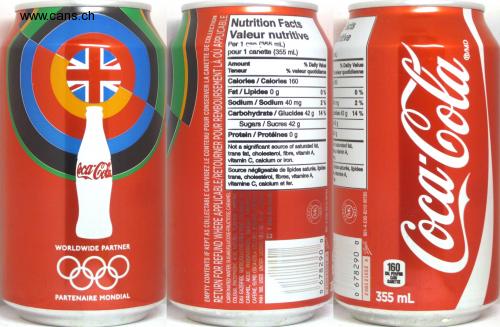 Nutrition Facts Valeur nutritive Per 1 can (355 mL) pour 1 canette (355 mL) ive Amount Teneur % Dally Value Calories/ Calories 160 Fat / Lipides 0 g Sodium / Sodium 40 mg Carbohydrate / Glucides 42 g 14% ide 42 g 14 % 0% Sugars / Sucres 42 g Protein / Protéines 0 g Not a significant source of saturated fat, trans fat, cholesterol, fibre, vitamin A, vitamin C, calclum or iron. oca-Cola Source négligeable de lipides saturés, ipde trans, cholestérol, fibres, vitamine A, vitamine C, calcium et fer. WORLDWIDE PARTNER 160 CAL PER/PAR CAN CANETTE PARTENAIRE MONDIAL 355 mL RETURN FOR REFUND WHERE APPLICABLE/RETOURNER POUR REMBOURSEMENT LÀ OU APPLICARLE CARBONATED WATER, SUGAR/GLUCOSE-FRUCTOSE, CARAMEL COLOUR, PHOSPHORIC ACID, NATURAL FLAVOUR CAFFEINE EAU GAZÉIFIÉE, SUCRE/GLUCOSE FRICTOSE COLT CARAMEL, ACIDE PHOSPHORIQUE ESENGE CAFEINE ®/MD COCA-COLA LID,LTEE T M4H 1B8, USED UNDER LICENSE/UTI SE PAREVE MK 613 0622290 001-4-C95-0212-MTB5 PAREVE 0 67829 0 o 613 2 083 2165 2 A Ball 001-4-C95-0212-MTB5 Coca-Cola arve