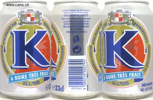 ALC.4.7%VOL ALC.4,7%VOL HATT BRASSEURS DEPUIS 1664 A CONSOMMER DE PRÉFÉRENCE AVANT LA DATE INDIQUÉE SUR LE FOND DE LA BOÎTE Pour toute information concernant ce produit, contactez nous au: SERVICE CONSOMMATEURS BRASSERIES KRONENBOURG BP 13-67037 STRASBOURG CEDEX 2 HAIT BRASSFURS DEPUIS 1664 KK A BOIRE TRÈS FRAIS AIS A BOIRE TRÈS FRAIS es e33cl BIÈRE BLONDE ALC. 4,7% VOL KRONENBOURG SEE PAR Wid 4846-DA RONENBOURG 3 080210 002794 KRONEND BRASSERIES KRONENBOURG RASSERIES KRONENBOURD BIERE BRASSEE PA