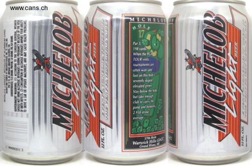 HOLE MICHELOB OB 17th Hole Warwick Hills G&CC Grand Blanc, MI 60425C211 ) WORLD'S LARGEST RECYCLER OF ALUMINUM CANS. BREWED AND CANNED BY ANHEUSER-BUSCH, INC ST. LOUIS, MO. PER 12 AL 02-AVERAGE ANALYSIS CALORIES, 134. CARBOHYDRATES, 11.5 GRAMS PROTEML J GRAMS FAL QL GRAMS GOVERNMENT WARNING: (1) ACCORDING TO THE SURGEON GENERAL, WOMEN SHOULD NOT DRINK ALCOHOLIC BEVERAGES DURING PREGNANCY BECAUSE OF THE RISK OF BIRTH DEFECTS. (2) CONSUMPTION OF ALCOHOLIC BEVERAGES MPAIRS YOUR ABILITY 78048.2 TO DRIVE A CAR OR OPERATE MACHINERY, AND MAY CAUSE HEALTH PROBLEMS. aht स्न्म ST TE S JI TEI E IS E Elght STJ.EST JN E TE J N N ZJ E. BTET T J.S T S. T J.