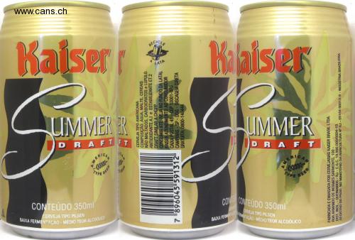 Ser CERVEJA TIPO AMERICANA DRAFT FT UMMER ER CERVEJA TIPO PILSEN CONTEÚDO 350ml BAIXA FERMENTAÇÃO-MÉDIO TEOR ALCOÓLICO MER TYPE COTON RECICLE 7 "896045"591312" CERVEJA TIPO AMERICANA COMPOSIÇÃO: ÁGUA, MALTE, CEREAIS NÃO MALTADOS, CARBOIDRATOS e LÚPULO. ANTIOXIDANTE A.I e ESTABILIZANTE ET.2 DRAFT SIMILAR A CHOPP CONSUMIR ATÉ: (VEJA NO FUNDO DA LATA). KAISER ATENDIMENTO AO CONSUMIDOR CAIXA POSTAL 45-CEP 13001-970 CAMPINAS-SP-DDG - DISCAGEM DIRETA GRATUITA: 0800-148444 BEER BEER UMMER DRAFT TYPE CONTE CERVES BAIXA FERMENTACIO CERVEJA TIPO PILSEN CONTEÚDO 350ml FERMENTAÇÃO-MEDIO TEOR ALCOÓLICO FABRICADA E ENVASADA POR CERVEJARIAS KAISER BRASIL LTDA. RUA ARMANDO DE MORAES SARMENTO, 100- DIST. INDL-QUEIMADOS-RJ-C.G.C. 19.900.000/0004-19. REGISTRO DO PROD. NO MINISTÉRIO DA AGRICULTURA N° RJ-05154 00013-8- INDÚSTRIA BRASILEIRA EER