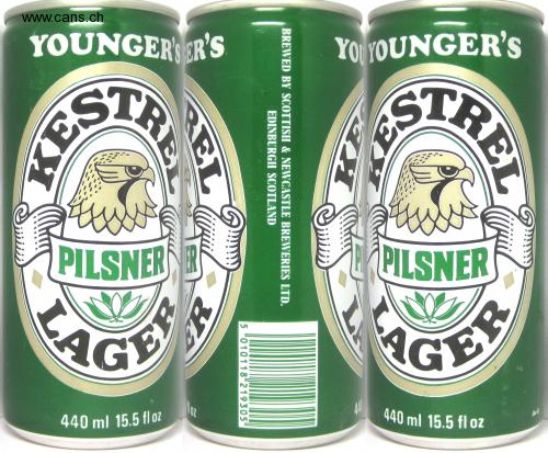 YOUNGERSER'S YOU YOUNGER'S PILSNER LA PILSNER GE 40 440 ml 15.5 fl oz 440 ml 15.5 fl oZ REL BREWED BY SCOTTISH & NEWCASTLE BREWERIES LTD. EDINBURGH SCOTLAND 5 "010118"219305 EL