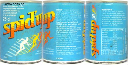 on the underside of the box. 33140 CADAUJAC FRANCE EMB 10241 For any anomaly or information: Stress-related diet drink carbohydrate content guaranteed vitamin C, with natural extracts lemon, orange SPID'UP: the greedy energy of sportsmen. Refreshing and pleasant pålais, SPID'UP is the diet drink ideal for athletes to whom it brings all the elements necessary for the course INGREDIENTS : Spring water, 10% citrus juice based on pulpy lemon concentrates and orange, fructose, glucose, extrats natural fruit flavors, phosphate tricalcium, disodium phosphate, chloride potassium, acerola, chloride sodium, magnesium lactate, vitamins C, B1, B2, B6. Lde to than door 25 cl snidiyp of the different stages of the effort. Beneficial from the warm-up, SPID'UP, thanks to a judicious contribution in mineral salts, carbohydrates and vitamins, supports your energy at the heart of the action and promotes the recovery process. Taking into account a normal, SPID'UP is intended to respond to the needs of a muscular effort immediate effect, especially during of a competition, under conditions special environment. a contribution energy thworise Average analysis per 100 g 0.11 g 0.01 g 5.67g Proteins Lipids Carbohydrates answer Energy value: 23 kcal, 97 kJ Potassium Phosphorus Sodium Calcium 53 mg 27 mg 24 mg 23 mg 3.5 mg Consumer information: nent Ac Consume Magnesium New diet. Consumer serVice before the date indicated Complexe de la Gravette Lives. Bl 0.06 mg Vit. B6 0.06 mg Lives. B2 0.06 mg Vit. C 12 mg Below the box. BI80241 on the underside 1. GREENHOUSE Developed and inspected in France