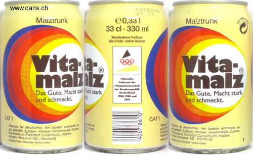 well chilled. Ingredients: water, barley malt, sugar, Carbon dioxide, caramel coloring, hops. well chilled. Ingredients: water, barley malt, sugar, Member of the Vitamalz association Vitamalz is alcohol-free. It tastes best Carbonic acid, caramel coloring, hops. The good. Makes you strong Vitamalz is alcohol-free. It tastes best 1202266 07:13 Eat Corn stun E0.331 33 cl · 330 ml Malt drink THE GRU Best before until the end: see bottom Vita-la- mallz Vita-. malt R. R. Official Supplier detr Olympiamanaschat Federal Republic The good. Makes you strong and tastes. Germany kit. and tastes good. 1984, 1988 and 1992 CAT 1 CAT1 it tastes good , Sugar, oden Vitametz good ki Carbon Holster-B Mil member de Holsten Brewery AG Hamburg Holsten Brewery AG Hamburg Member of the Vitamalz association POINT % 24 4067 8610