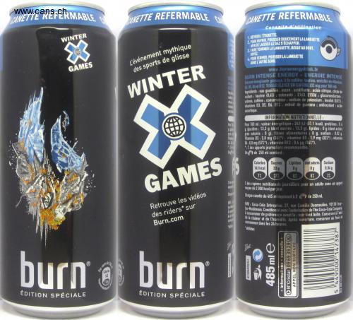 Best before: see bottom of the box. Keep safe SPECIAL EDITION CLOSABLE CAN CLOSABLE CAN BURN INTENSE ENERGY- ENERGIE INTENSE from heat and humidity. After opening, keep cool and Ingredients: carbonated water: sugar: acidifiers: citric acid, citrate Carbonated energy drink. with caffeine, taurine, enriched with vitamins 2. TO OPEN, GENTLY PUSH THE TAB CLOSABLE ANETTE CN CLOSABLE CAN CLOSABLE HANDLE Tips for use WINTER 1. REMOVE THE LABEL. The mythical event board sports IN ORDER TO LET THE GAS ESCAPE. 3. TURN THE TAB TO THE END. 3.1 DRINK. 4. TO CLOSE, PUSH THE TAB IN THE OTHER DIRECTION. GAMES www.burnenergydrink.fr BUR WINTER B 以 R3 B5. Bố and B12. HIGH CAFEINE CONTENT (32 mg per 100 m) sodiun arine o vitanies Sodium: taurine (0.4%): colors: E163, E150d: glucuronolactone flavors, caffeine: preservative: potassium sorbate: inositol (0.01%. vitamins B3. B5. B6. B12; guarana extract; antioxidant: acid ascorbic. NUTRITIONAL INFORMATION: For 100 ml: energy value: 243 kJ (57.1 kcal), proteins: 0 4 4.carbohydrates: 13.3 g (of which sugars: 13.3 g). lipids: 0 g (including acids saturated fat: 0 g). dietary fiber: 0 g, sodium: 0.02 a. Vitamin B3: 5.8 mg (36% *): vitamin B5 1.9 mg (32% *); vitamin B6: 0.8 mg (57% *); vitamin B12: 0.4 ug (16% *). *: X of the recommended daily allowance. One P) of 250 ml contains: Pou fat her Vitami a Calories Sugars 33 g Fat of which saturated Sodium 0g 143 kcal 0g 0.04g GAMES 7% 37% 0% 0% 2% 1 of moga 1 of the daily nutritional benchmarks for an adult with a average of 2000 kcal per day. Find the videos riders * on Chapu Each 485ml can is equivalent to 2 of 250ml. EMO EMB: Coca-Cola Entreprise, 27, rue Camille Desmoulins, 92130 Issy- es-Moulineaux. Packaged with permission from The Coca-Cola Company. from b d CONSo from heat and humidity, After opening, store in a neat consume within 24 hours. Burn.com * athletes Ball burn burn Calories 143 SPECIAL EDITION by verred "N marks 250 S1BM09A + • information • advice • N ° Cristal 09 69 39 29 00 NO SURCHARGE CALL 485mle 449000 14738 5. BU 881220