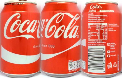 Coke. 330ml Coca-Cola Serve chilled Soft drinks. Ingredients: Water, sugar, carbon dioxide, dye (caramel E150d). acidity regulator (E338), natural aromas (incl. caffeine). NUTRITIONAL CONTENT Store dry and clothed 100ml 330ml C ") above normal room temperature. PER Energy 180KJ / 594KJ / 42kcal 139kcal (7%) Best before: And (0%) See the bottom of the can. Cool 0g of which saturated fatty acids: And (0%) Carbohydrate 10.6g of which sugars: 10.6g 35g (132) 35g (39%) Protein: Sat 0g And (0%) And And (0%) "Reference intake for an adult average person (8400KJ / 2000kcal). © 2014 The Coca-Cola Company. since 18 Since 1886 Carlsberg Danmark A / S, DK-7000 Fredericia 33 27 33 77 coca-cola.dk 330ml Energy Mate Fat atsy r And Sat 594kJ And 139kcal Alu 72 Or or 3 100ml: 180kJ / 42kcal 5 000112 545326 3041288 16D64BK09C