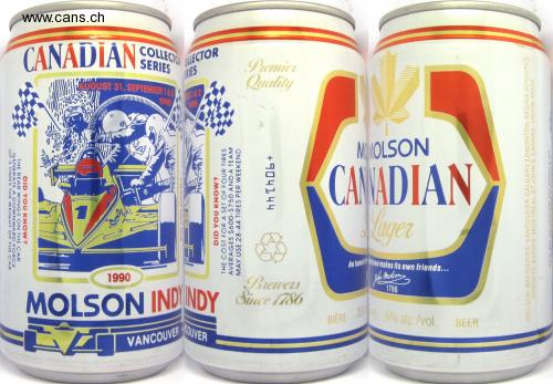BIERE 5% alc./vol. CANADIANS COLLECTO SERIES GRIES DLLECTOR Premier Quality AUGUST 31, SEPTEMBER 1& ER 1& 2 4990 NOLSON CANADIAN Vager An hone ow makes its own friends... 1990 mdon Brewers 1786 MOLSON IND NDY Since 786 BIERE 365 5% alc./vol. BEER COUVER VANCOUVER GENERATE A D OWNWARD FORCE THE REAR WINGS ON THE CAR OF 3 TIMES THE WEIGHT OF THE CAR DID YOU KNOW? 45 AV DID YOU KNOW? THE COSTFOR A SET OF FOUR TIRES AVERAGES $600-$750 AND A TEAM MAY USE 28-44 TIRES PER WEEKEND +904144 MOLSON BREWERIES VANCOUVER.CALGARY. EDMONTON. REGINA.WINNIPEG TORONTO. BARRIE.MONTREAL.STJOHN'S. CANADA UNION MADE