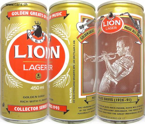 OUGHT TOGETHER THE GREAT INDIVIDUALS OF JAZZ MUSIC ALL THE WAY COLLECTOR SERIESES 1993 GOLDEN GREATS OF N T AND A BRILLIANT ARRANGER. THE FORCE OF HIS TATHER OF JAZZ-ROCK FUSION, DAVIS WAS A MASTER N°10 IN A SERIES OF 12 MILES DAVIS (1926-91) GOLDEN GREATS OE OF MUSIC LION MUSIC ALL THE WA LAGER GOLDEN GREAT LT C. B. LION ATL LAGER ER SAB 450ml 00.. GOLDEN GOOD.. MIL MILES DAVIS (1926-91) VOUR. THE FOUNDING FATHE OF THE TRUMPET AND PERSONALITY BROUG RIES 1993 M28F3N THE SO UTH AFRICAN BREWERIES LTD. 2 JAN SMUT S AVEN UE JHB. 5% ALC/VOL DIE SUID-AFRIKAANSE BROUERYE BPK. JAN SMUTSLAAN 2 JHB. SAVE