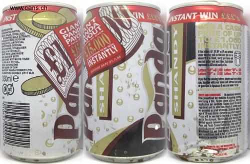 INSTANT WIN SES'S divided equally between promotional packs d Panda BREWERY, BLANDEORD ST MART, BORSET, DT out to the claimant. The E15,000 prize fund has been available by sending a SAE to the above addrest INST INGREDIENTS: CARBONATED WATER, BEER, SUGAR, CITRIC ACID, AVOURINGS, MALT EXTRACT, PRESERVATIVE (SODIUM BENZOATE), ARTIFICIAL SWEETENER (SODIUM SACCHARIN), STABILISER (QUILLAIA EXTRACT). MADE WITH LEMONADE AND BADGER BEER. CONTAINS NOT MORE THAN (0.5% ALC. BY VOL. BEST BEFORE END SEE BASE OF CAN MADE BY PANDA DRINKS LTD. BLANDFORD DORSET DT11 9LR 000 GIANI PAYOU DA IN ESS PANDANT AYOUT £&&'s N A CASH PRIZE OF UP TO E1,000 A TOTAL OF INST INSTANTLY 15.000 IN CASH P IN CASH PRIZES TO BE WON INSTANTLY! 330ml e IY the letters AP, DP,HP or IP are printed under the ring pull on this can you are a winner!f it is blank, sorry you have not won but better luck next time. Each letter represents a different cash priza CLOSING DATE 31.7.95 st Letters "AP"-61,000 Letters"HP" E50 Letters "DP"= E100 Letters "P"= f you find the winning letters, simply send your winiy can, together with your name and address (and paru or guardian's signature if you are under 18) t: Payout, PO Box 32, Hertiord S14 1PF ROLES AND CONDITIONS No purchase necassy Free promotional top available by applying in wrig enclosing a SAE, to the above address, Only one application per envelópe. Claims should be sent by registered post to avobid Iss. Proof of posting camdt accepted as proof of receigt. Claimants under be age of 18 must obtain a parent or guardian's sigunturi. Prizes will be awarded in the form of a cheque ha CLOSING DATE 31.7.95/ ROMOTER: HALL AND WOODROUSE LI PACG21E - ఒ SH HS "010437 000042