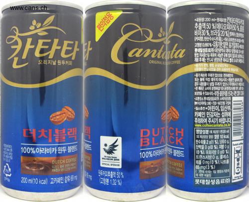 200ml(10 kcal) 고카페인 힘유 69 mg 내용량:200ml-원제료명칸타타워드 추출액 50 %(에티오피아50% 를 비30 %, 브라질20 % 정제수 한성로 칸타타 Cans 커피향, 탄산수소나트룸L-아스코리빈산니트를 에치 고형분:060%-유동기한밑연 표기일까지 antuta TO 롯데칠성음료(주㈜) 대전광역시 대덕구 문명사로 5 포 방법: 직시광선을 피하여 서늘한 곳에 얼지 입도록 보관하이고 개봉 후 에는 반드시 냉장보관 하시고 빨리 드시기대입니다 "용기가 변형 평창 손상되었거나 내용물이 변질되었을 경우 음용하지 마십시오. •용기 파손의 우려가 있으므로 전자래인지 또는 불에 직접 데우지 마십시오. 개봉전 심하게 흔들 경우 내용물이 넘칠 우려가 있으니 주의하시기 바랍니다 •본재품은 소비자 분쟁해결기준(공정위교시에 의거 고환 도 보상받을 수 있습니다. 부정 불량식품 신과는국전 많이 39 •교환장소:롯데칠성음료(주) 소비자상담팀 교수신자부담 080-730-1472)및 구입체 ·질소충전 + 어린이, 임산부, 오리지날 원두커피 ORIGINAL BLE END COFFEE 카페인 민감자는 섭취에 주의하여 주시기 바랍니다. www.coffeecantata.co.kr DUTCH BLACK 100%아라비카 두 블레드 더치블랙 영양성분 1회 제공량 1캔(20m) 1회 제공량당 함량: 열량 10 kcal, 탄수화물 2 g(1 %), 당류0 g, 단백질 0 g(0 %), 지방 0 g (0 %), 포화지방 0 g(0 %, 트랜스지방 0 g, 콜레스 테롤 0 mg (0 %), 나트륨 65 mg(3 %) ( )안의 수치는 1일 영양소기준치 에 대한 비율임 00 Dutch cofee 100%아라비카 원두 블렌드 OFFEE V7h Asien Gemes INCHEON 2014 DUTCH COFFEE 약25℃ 물로 천천히 추출하여 커피맛과 향이 신선한 더치카피 DU TCH COFFEE OFFICIAL SPONSOR 로 선산히 추출하여 B산선한 더치커피 운두커피추출액 50% (고형분 1,32 %) 일미늄 Brwdg oy blce cofee bm 롯데칠성음료(㈜) 편의점용 8 801056 068936