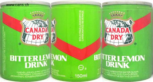 AURALI PRESERVATIVE E211 AND QUININE 16-EDIENTS: CARBONATED WATER, SUGAR, AROMAMNEN, E2 ELE211 AND KININ. THE JUICE, CITRIC ACID, FLAVORINGS CANADA DRY CANADA DRY BITTER LEMEMON DRINK K BITITER LEMON DRINK alu TEN SUGAR, NATURAL INGRE SMILE (NATURE CONTAINS CARBONATED WATER 150ml Canned under authority of Canada Dry Corp by Sofiero Bryggeri AB, Laholm S.veden. CARBONIC SOFT DRINK CARBONATED BEVERAGE