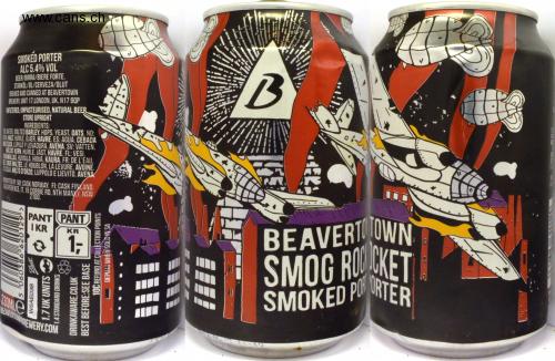 BEAVERT OWN SMOKED PUURTER SMOKEO PORTER ALC 5.4% VOL BEER/BIRRA/BIERE FORTE. STARKÖL/ØL/CERVEZA/OLUT BREMED AND CANNED AT BEAVERTOWN BRENERY, UNIT 17,LONDON, UK, N17 90P IFLTERED, UNPASTEURISED, NATURAL BEER. STORE UPRIGHT INGREDIENTS: E ATER MALTED BARLEY, HOPS. YEAST, OATS. NO: MALT HUMLE, GJÆR, HAVRE. ES: AGUA, CEBADA MUTEADA LUPULO Y LEVADURA, AVENA. SV: VATTEN, WATAT KORN. HUMLE, JÄST, HAVRE. FL: VESI. HOMALLAS HUMALA, HIIVA, KAURA. FR: DE L'EAU, ECRE MALTE LE HOUBLON, LA LEVURE, AVOINE. AUIA MALTO D'ORZO, LUPPOLO E LIEVITO, AVENA RIEDBY NO: CASK NORWAY. FI: CASK FINLAND. OFERIENCE, IT, 15 CORRIE RD, NTH MANLY, NSW 2100. PANT PANT I KR KR SMOG ROCKET SMOKED PURTER 01 1; BENIERTIONNAEWERY.COM 1.7 UK UNITS