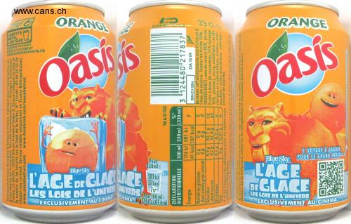 LES LOIS DE L'UNIVE NIVERS EXCLUSIVEMENT AU CINEMA ORANGE ORANGE 33 cle ACIER RE A CANETTE METAL A RECYCLER LO CONSIGNE POUVANT VARIER LOCALEMENT www.CONSIGNESDETRI.FR 7. 1 VOYAGE À GAGNER Blue Sky POUR LE GRAND FROID Pour 330ml: L'AGE GLACE STUDIOS Blue Sky LAGED 581 kJ 137kcal 7x° Pour 100 ml STUDIOL DE LES LOIS DE L'UNIVERS CINEMA176/4l kol EXCLUSIVEMENT AU CINEMA Commercialisé por Orangina Schweppes France. Fobriqué avec l'autorlsation du propriétaire de la marque. Service consommateurs : Orangina Schweppes France, CS 80491, 13593 Aix-en-Provence Cedex 3, France (indiquer la date et le numéro du lot inscrits sur le fond de la boite). N° Cristal : 09 69 36 32 36 (Appel non surtaxé. Service valable uniquement en France Métropolitaine). www.oasisbefruit.com www.facebook.com/oasisbefruit E TM &FOX DÉCLARATION NUTRITIONNELLE *% (330 ml) 100 ml 330 ml 176 kJ 581 kJ 41kcal 137 kcal 3124480 217837" Energie B6KD13BN 60 9L VO Matières grasses dont acides gras saturés Glucides dont sucres Boisson rafraichissante aux fruits et à 0g 32,7g 0. l'eau de source. Teneur en fruits 12% 0g 0. INGREDIENTS: eau de source 80%, jus de 0g 13 fruits à base de concentrés 12% (orange 3. 10%, pomme), sucre, acidifiants: acide 0. citrique et acide malique, aromes, anti- oxydont : acide ascorbique, colorant: Protéines 0,2 g BLO * de l'apport de référence pour un adulte-type xtrait de poprika. 0g. 6 LO'O (8400kJ/2000 kcel). A consommer da préférence avont le : volr sur le fond de la botte. A coaserver alabr de la chaleur. Après ouverture, conserver au réfrigérateur et consommer dans les 5 Jours.