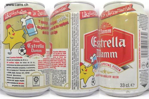 And onle yratis weekdays from Sa 134 d 13h deposited with wtar s before a notary. Phone of consumer care 902 119 553 ha ha Beor / Bibre Spie Birra Speciale / Cervel Eqpei Brewed by / Brewed canned in Spain by / Bransh et conditionnée en Espepe pet Prodotta ed Inscaltokt i Spagna da / Produnte canned em scared by SA. DAMM-Rossl, 515 Sign up Jarramania! And got and yratis Star Damm Jas jarres d by blp l s of the teams 1876 BARCELONA Damm Star UWamm Damm (Star Damm PILSED SPECIAL Promotion valid until on July 31, 1999 in national territory or until the end of until Send 5 Star points BEER stocks (nstencias (150,000 jars). Will only be admitted points or rings pr from the pack of 6 bottles of 25 cl. or in atirin complete shipments of ilas separately. Bases ISPECIAL PILSEN 25 red rings from 33 cl cans, Indicating your personal data (name, alu surname, full address, f. birth, tel.) and the 1st Division team of your choice, to DAMM, Apdo. Correos 241, 08760 Martorell (Barcelona). nonal that you provide us will be our database, where you can ww access rights, rectification 1 cancellation. Through S.A. Damm and in the future, you can receive commercial offers from after companies; if you don't want receive them communicate it in writing I SA. Damm, domiciled in Rossello, 515 08025 Barcelona. (Lay Organica 5/29 of October 1992). The personal data that Included in our ajercar los deroch ALUMINUM REDCAE CONTAINER LAC. 5.4% VOL Batch and consume prebere mind before fo de / Bt before end: / A consommr préférence avant haa consume if you prefer I enter: / Consume of preference before do fi PIENUN QUALITY BEER You will receive an exclusive Jug three Brewery of the chosen team Cash on delivery of 295 pesetas SA LFP Resa Aer Orgin 33 cl. and for shipping costs Official Provider INGREDIENTS: Water, Malt, Yeast, Rice, Corn, Hops, Stabilizer E-405, Antioxidant E-223./ INGREDIENTS: Water, Malt, Yeast, Rice, Maize, Hops, Stabilizer E-405, Antioxidizer E-223./ INGRÉDIENTS: Eau, Malt, Levure, Riz, Mais, Houblon, Stabilisateur E-405, Antioxydant E-223 / INGREDIENTI: Acqua, Malto, Lievito, Riso, Mais, Luppolo, Stabilizzante E-405, Antiossidante E-223 / INGREDIENTS: Water, Malt, Yeast, Rice, Milho, Hops, Stabilizer E-405, Antioxidant E-223. I DISCOVER OUR WEBSITE I http://www.damm.es