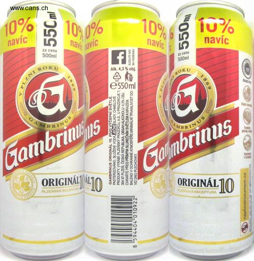 navi navic 100% 10% in addition 1% navic 10% 6 10% navic in addition in addition for the price 500ml for the price 500ml ROKU Alk. 4.3% vol. ROKU ALU 550ml CZECH PO beske savi GAM NUS Gombrinus ORIGINAL10 BRIN GA MBRIN Tradia procedure ratl Gambrims I'll make it ORIGINAL10 PILSEN RECIPE GUROVI PILSEN RECIPE PILSEN 55Cml ETCHACH 1869 169 GAMBRINUS ORIGINAL 10. BEER LIGHT BEER. PASTERIZED. INGREDIENTS: WATER, BARLEY MALT, HOPS PRODUCTS. MANUFACTURED BY: PLZEŇSKÝ PRAZDROJ, A.S., U PRAZDROJE 7, 304 97 PILSEN, CZECH REPUBLIC. ALCOHOL CONTENT: 4.3% VOL. PROTECT FROM DIRECT SUNLIGHT AND FREEZING. PACKAGED IN A PROTECTIVE ATMOSPHERE. MINIMUM DURABILITY UNTIL: SEE THE BOTTOM OF THE CAN. WATCH US ON FACEBOOK ZNI 8 594404 010922 INZT 550ml 1869 napivosrozumem.cz wEOINK 42022710 160, INFO@PRAZDROJ.Cz,