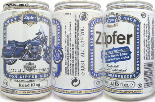 FISCHER'S BIARLEY BAVIDSON EMPFIEIT RSR EIN GLAS HELLER FREUDE-ZPFER BIER EINGLA RESCO GARDER EN LIEU FRAIS ACE VOR WARME GESCHÜTZT LAGERN EALER FREUDE-ZIPFER BIER EIN GLAS HELLERFREN 2PPER BIER EINGLAS HELLER FREUDE ZIPFER RIER LIMITED PUM 3 alu NACH Zipfer RN F DEN ÜLT Zipfer EDITION DMET SEIT 1858 ARKE er DO Der helle Wahnsinn: Die 5er-Dosen-Edition präsentiert von Zipfer MOTOR HARLEY-DAVIDSON .E' LEジ Hopfenkell wnd liwd hislich erfrischend .21-10 WIER 4, WETRINGERG. 21-1 TEL. 1/505 15 1Y VON ZIPFER BIER BR IPPER BRAUREZEPT NET CO ONT. 11,2 US fl. oz.e N3 Road King LIRESCO CONSERVES PLAC STORE IN A COOL EUN DE N EUNDEN VOLLBIER BEER BIRRA BIERE CERVEZA SOR PIWO MINDESTENS HALTBAR BIS ENDE: SIEHE BODEN À CONSOMMER DE PRÉFÉRENCE AVANT FIN: VOIR AU DESSOUS BEST BEFORE END: SEE BASE OF CAN CONSUMIR PREFERENTEMENTE ANTES DEL FIN DE: VEASE EN LA BASE DA CONSUMARSI PREFERIBILMENTE ENTRO FINE: VEDASI FONDO e0,331· ALC. 5,2% VOL. GEBRAUT UND ABGE TRADITIONELLEM GEBRAUT UND ABGEFÜLLT IN ÖSTERREICH BREWED AND CANNED BY / BIÈRE BRASSÉE ET MISE EN BOÎTE PAR /BIRRA SPECIALE PRODOTTA E CONFEZIONATA DALLA / CERVEZA FABRICADA Y ENVASADA POR / GYARTJA/ ÖSTERREICHISCHE BRAU-AG, A-4020 LINZ, AUSTRIA/ CONTENENTE ANTIOSSIDANTE ACIDO7-AS CORBICO LO