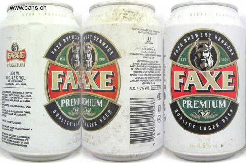 QUALITY LAGER BE ER BONUS BEER CERVEZA TAKE CERVEI LER PRODUCER / GAMINTOJAS I PRODUIT PAR PRODUTTORE / PRODUCER DENMARK BREWERY DENMARK ROYAL UNIBREW EVERS ROYAL UNIBREW AS FAXE ALLE 1.4640 FAXE DENMARK / DANIA / DANIJA / DANIMARCA / DANEAK wWW.FAXE.COM 1901 FAXE BREWE ESTD FAXE 1901 MINDESTENS HALTBAR BIS BEST BEFORE À CONSOMMER DE PRÉFÉRENCE AVANT LE CONSUMIR PREFERIBLEMENTE ANTES DE DATA DI PRODUZIONE (P) / DA CONSUMARSI PREFERIBILMENTE ENTRO (B) THE BEST CONSUME BEFORE: DATE ON THE BACK OF THE PACKAGING • GERIAUSIAS IKI MINDST HOLDBAR TL CONSUMIR PREFERENCIALMENTE ANTES DE VER FUNDO DA LATA ESTP FAXE PREMIUM FAIXE 330 ML ALC. 4.6% VOL. KU. 4.6 TÜRIO PROC. KU. 4.6% VOL. ALC. 4.6% VOL. ALC. 4.6% VOL. SE BEBERNOR AUTATEN WASSER, GERSTENMALZ, HOPFEN. NGREDIENTS: WATER, BARLEY MALT, HOPS. NGRÉDIENTS: EAU, MALT D'ORGE, HOUBLON. NGREDIENTES: AGUA, MALTE DE CEVADA, LUPULO NGREDIENTES: AGUA, CEBADA MALTEADA, UPULO PREMIUM QUALITY QUALITY MAD WATER, BARLEY MALT, HOP NOREDIENTE ACQUA, MALTO D'ORZO, LUPPOLO AL LAB LAGER LAGER NDETYJE YRA MIEŽIŲ SALYKLO GER BEER STORE IN COOL PLACE / STORE IN A CLOUDED PLACE. 330m 100 ml 18% val 330 ml OTBUTOR IN POLANDY DLSTRIBUTEUR BAPOLOGNA DISTRIBUTOR IN POLAND: KONARY REGIONALNIE LOMŽA SP. Z0.0. COBERNETYI 7.02-677 WARSAW Alc 4.68 4.6% Alc. 4.6% voting. BEER