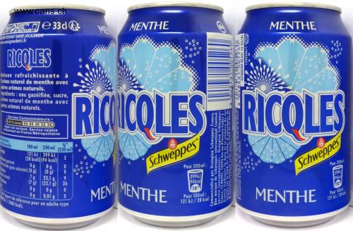 MEN MENTHE E 33d R TaYopport de référence pour un adulte-type MENTHE HLO CANETTE METAL ARECYCLER Ló MEN MENTHE UGRE POUVANT VARIER LOCALEMENT m.consignesdetri.fr RIOOLES Boisson rafraîchissante à larôme naturel de menthe avec autres arômes naturels. hgrédients : eau gazéifiée, sucre, arôme naturel de menthe avec autres arômes naturels. RICHNICO LES RICOLES * Service Consommateurs• ON°Cristal 09 69 36 32 36 Appel non surtaxé. Service valable iniquement en France Métropolitaine ldaration nifionnelle 1783 100 ml 330 ml (330 ml) 121 kJ 399 kJ (28 kcal) (94 kcal) 0g Schweppes Pour 330ml: keres grosses nt aodes Schweppes 399k 94kca Pour 330 ml: 09 gras saturés) (0 g) ucides nt ucres) totines 399KJ 94kcal (0g) 7g 9. 23,1 g (7 g) (23,1 g) 0g 0g MENTHE 5%* Pour 100ml: Pour 100 ml: 121 kJ/28 kcal 121 kJ /28 kcal 0 g 0,01 g O/2000 kcal). 100 5 Doo Commercialisé par Orangina Schweppes France. Une marque de Schweppes international Limited. Service consommateurs: Orangina Schweppes France, CS 80491, 13593 Aix-en-Provence Cedex 3 - France (indiquer la date et le numéro du lot inscrits Sur le fond de la boite). A consommer de préférence avont le voir sur le fond de la boite. preference ovant le voir sur le fond de la boit conserver à l'abri de la chaleur. C7AG24A N RIC 14 04/AL C330346/1 17o 00