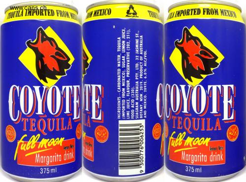 Margarita drink TROUILA IMPORTED FROM WE AIMPORTED FROM MEXICO OK MEXICO Recycle COYOTEE (TOYOTE TEQUILA full moon Margarita drink TEQUILA CENUND CENTM lermon/ime lemon/lime 375ml 375 ml INGREDIENTS - CARBONATED WATER, TEQUILA (IMPORTED FROM MEXICO), SUGAR, LEMON JUICE, LIME JUICE, FLAVOUR, PRESERVATIVE (202, 211), FOOD ACID (330). SEAGRAM AUSTRALIA PTY. LTD. 32 JASMINE ST., BOTANY. NSw. 2019. PRODUCT OF AUSTRALIA AND MEXICO. 2897E. 6.0% ALC/VOL.