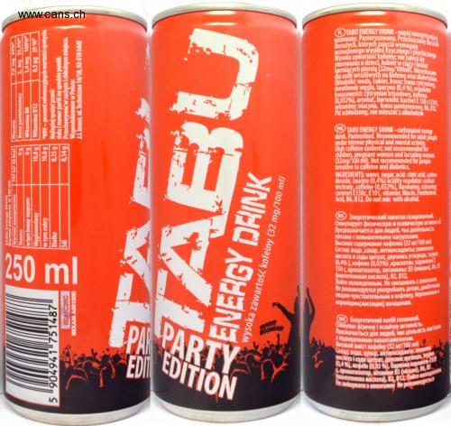 Designed for people whose desirability poe'zan Scent, vitamins VZ (mӀәtsim), ВС, ВЗ Warehouse: water, zukor, antioxidant: lemon karmiących piersią 32mg / 100ml). Niewskazane Wzmożonego wysiłku fizycznegoi psychicznego 04%), kofen (0.03%), barvnik caramel E18 people sensitive to caffeine, pregnant women and 150 s, flavoring, vitamins: B3 (niacin), B, B8 gazowany. Pasteryzowany. Przeznaczony dla os60 Simulation physical Ii nsikhdchnu activity. Visoky vm_st kofeinu (32 mg / 100 ml) OTABU ENERGY DRINK - napój energetyzujacy dla osób wrażliwych na kofeinę oraz diabetyków. Składniki: woda, cukier, kwas: kwas cytrynówy, (049%), caffeine (0.03%) caramel color! E stósowania u dzieci, kobiet w ciąży i kobiet Do not drink with alcohol Not recommended Not recommended for children, diabetics soda acid citrate, carbon dioxide, gurin. Drink chilled. Do not mix with alcohol gazowany. Pasteryzowany. Przeznaczony đa dorosłych, których zajecia wymagają Wzmożonego wysiłku hzycznego i psychiczneoo Wysoka zawartość kofeiny; nie zaleca sie Sladniki: woda, cukier, kwas: kwas cytrynowy. dwutlenek wegla, tauryna (0.4%), regulator kwasowości: cytrynian'trisodowy, kofeina (0.032%), aromat, barwniki: karmel E 150 CIEIO1. witaminy: niacyna, kwas pantotenowy, Bố, B12 Pić schłodzony, nie mieszać z alkoholem ENG TABU ENERGY DRINK - carbonated energy drink. Pasteurized. Recommended for adult pëople under intense physical and mental activity, High caffeine content; not recommended for children, pregnant women and lactating women 32mg / 100 ml). Not recommended for people sensitive to caffeine and diabetics. INGREDIENTS: water, sugar, acid: citric acid, carbon dioxide, taurine (0.4%) acidity regulator: sodium tricitrate, caffeine (0.032%), flavoring, coloring caramel E150c, E101, vitamin: Niacin, Panthotenk Acid, B6, B12. Do not mix with alcohol. Into an energetic carbonated drink Simulates physical and mental activity Designed for people whose activities Associated with increased loads. High caffeine content (32 mg / L 100 ml) rest: water, sugar, antioxidants: lemon Acid and soda citrate, carbon dioxide, 1yu 250ml RU with flavoring, vitamins: ВЗ (nation), В, В (pantothenic acid), B2, B12, ne is recommended for children, dnobenik, lactating (lactating) women. Energy drink of gas. dimmable physical and ncal activity PA PARTY MAOH 6OOMOAIN Movable navantazhennymi. Visokiy vm_st codeinu (32 mg / 100 ml). EDM EDITION TABU Energy Drink Wartość odżywcza w 100 ml: Wartość energetyczna 7,0mg 449% 2, mg 33.3% 1,4mg 100% 0.5 ug 20% 10,8 g NRV-procent referencyjnych wartośd spożyda Niacyna Kwas pantotenowy Witamina B6 60 197 kJ / 46 kcal Dzsn wtym kwasy nasycone Weglowodany w tym cukry Białko 10.8 g Witamina B12 5 904941 751487 0,35 g Najleplej spożyć przed: data i numer partii na spodzie puszki. 0.14g Przechowywać w suchym i chłodnym mlejscu. BE41C26C REXAM A56133B Wyprodukowane w Polsce: J. Invest, ul. Techniczna 16/18, 92-518 Łódź 195 ENERGY DRINK wysoka zawartość kofeiny (32 mg / 100 ml)