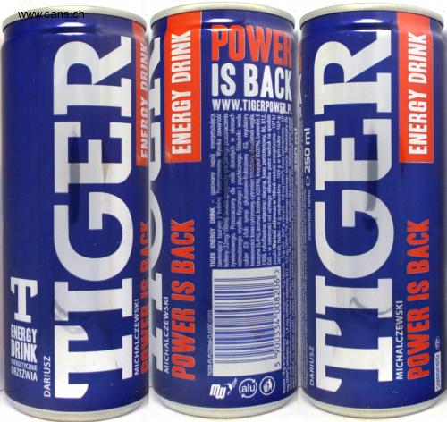 POWER IS BACK wwW.TIGERPOWERM DRINK (alu) ENERGY REFRESHES DARIUSZ TIGER MICHAL CZEWSKI ENERGY DRINK MICHAL CZEWSKI POWER IS BACK ENERGY DRINK TIGER-PL-PU250ml-CLASSIC-V2013 TIGER ENERGY DRINK carbonated energy drink, containing taurine and caffeine. Pasteurized. High content caffeine (32mg / 100mi). Food for special purposes nutritional. Designed for adults during periods increased physical and mental effort. Ingredients: water, sugar (D) Mub glucose-fructose syrup (G), regulators acidity: citric acid, trisodium citrate; carbon dioxide, taurine (0.4%), aroma, caffeine (0.03%), inositol (0.02%), colors: E 150d, riboflavin; vitamins: niacin, pantothenic acid, B6, B12. -depending on the ingredient used: see imprint on the bottom DG 5 900 334 008206> Cans. Nutritional value in 100 ml: energy value -197 kJ -0g; carbohydrates-10.9 g, including sugars-10.9 g; Fatty-0g, including saturated fatty acids 0g; fiber-0g; sodium-0.07 g; niacin-7.0 mg (44% *); pantothenic acid -2.0 mg (33% Y, vitamin B6 - 14 mg (100%); vitamin B12 - 0.5 μg (20% *). *% of the recommended daily intake. Not recommended for diets, people sensitive to caffeine, pregnant and lactating women. Do not mix with alcohol. Do not freeze. Best before: see imprint on the bottom of the can. The given date is also the designation of the production part. Store dry. (46 kcal); protein Calodegmizacheniory miej cu, Dystrybutor Mws Sp.zo.o. Sp.k ul. Strefowa 13, 43-100 Tychy. CANS The given date is at the same time the meaning of the production part. Store in dry, LEXWEd IN UN gA A three print on cool shady place. Distributor: MWS Sp.zo.o. Sp.k ul. Strefowa 13, 43-100 Tychy. DARIUSZ Net content: e 250 ml TIGER MICHALCZEWSKI POWER IS BACK ENERGY DRINK G3UG26C