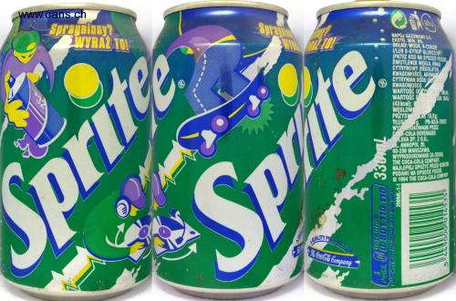 Sprani Thirsty? Say it! SPARKLING ES EXTR. MIN. 9% COMPOSITION: WATER, A-SUGAR V OR B-GLUCOSE SYRUP (SEE CODE ON THE BOTTOM OF THE PUSZO), CARBON DWUTLENEX, ACID LEMON (REGULATOR ACIDITY), FLAVOR SODIUM CITRATE P ACIDITY, APPEALING VALUE IN0ml: THE VALUE OF ERETE KNOWS 184M (43 kcal); CARBON ADV FAT FACILITATED BY COCK-COLA BEVERAGES POLSKA SP. From 0.0, UL ANNOPOL 20, 03-236 WARSAW MANUFACTURED BY CONSENT THE COCA-COLA COMPANY. BEST BEFORE CONCENT: GIVEN ON THE BOTTOM OF THE CANS. © 1994 THE COCA-COLA COMPANY ANE 10.5 . PH-93 / 4-79032 UALIT PSDUCTON Ca Cla Company Sprite helpline 20094L-1-1 7LO000677