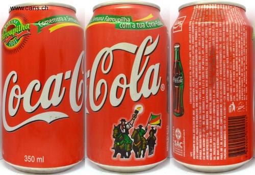 SEA oupitha fomemora a Sem Semana Farroupilha 2001 Com a tua Coca-Gia oke Coc-Cola 350 ml SUAPE, CABO S. CGC IND E COM PAJUÇARA, CIA. DE - BR PEDRINHAS SÃO LUIS/MA - CGC LTDA. -Z. 3. CI. PORTUARIO VIA RAPOSO KM 104 MANAUS TABULEIRO DO LTDA. 03.380.763/0001-01 CIA. DE - DIST. 12 B LTDA. DEP. S/N", KM CGC REFR. LTD AV. 34.590.315/0001-58 www.cocacolabrasil.com.br 1473 IPIRANGA. RIBEIRAO PRETO/SP, CGC 55.960.736/0001-01 • SPAIPAS.A. - IND. BRAS. DE BEBIDAS - ROD. BR-277, KM 81.5. 3524. UBERABA CU 2270. CGC 00.904.448/0001-30 SPAL - IND. BRAS. DE BEBIDAS S.A. - ROD. D.G.P.B. COUTO, SAN, KM 65,5. JAPI, JUNDIAI/SP, CGC 61.186883053-14- PIO JANEIRO REFRESCOS LTDA. - RUA ANDRE ROCHA, 2299, JACAREPAGUA, RIO DE JANEIRO/RJ. CGC 00.074.569/0001-00 CENTRALLI RER.S A. ROD PE DUTRA. KM 197. RUA E, LOTES 07 A 10, DIST. INDUSTRIAL, QUEIMADOS/RA, CGC 01 047.693FO001-30 BRASAL REFR. S.A.., CSG 06. LOTES 1e 2 TAGUATI SA SUL, BRASILIA/DF.CGC 01.612.795/0001-51 VONPAR REFR. S.A., AV.ASSIS BRASI1,SARARDI. PHRTO ALEGRE/RS.CGC 91.235.59/0024-07 RENSA IND. BRAS. DE BEBIDAS LTDA. ROD. MARIO ANDREAZZA, S/N", VARZEA GRANDE/MT, CGC 01.403.613/0001-32 REFR. DO OESTES.A., ROD CAMPO GRANDE PAULO, KM 1, DR. ALBUQUERQUE, CAMPO GRANDE/MS, CGC 03.025.988/0001-31 NORSA REFRIGERANTES LTDA. - ROD, CE-021, KM(6. DIST INDUSTA PAJUÇARA, MARACANAU/CE, CNPJ: 07.196.033/0021-41 CIA. MARANHENSE DE REFRIGERANTES- BR 135, KM 21, DISTRITO INDUSTRIAL PEDNRTUARIO 01,006 8 L RECICLAVEL REG PROD. MINISTERIO DA AGRICULTURA RJ-0515800001-7. BRASILEIRA IND