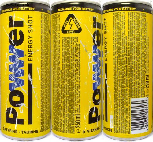 CAFFEINE TAURINE RECHARGE YOUR BATTERY RECHARGE YOUR BATTERY RECH RECHARGE YOUR BATTERY LEVEL NIACIN B-VITAMINS ENERGY S! HOT GB Energy drink with caffeine, taurine and vitamins. Carbonated, pasteurized. Contains sugar and sweeteners. Contains a source of phenylalanine. Reduced energy value treduced Sugarl. High caffeine content Not recommended for children or pregnant or breast-feeding women (40 mg / 100 ml). Ingredients: water, sugar, carbon dioxide, 0.4% taurine, acidity regulators: citric acid and sodium citrates, flavors, colors: sulphite ammonia caramel and riboflavins, caffeine 0.04%, inositol, sweeteners: aspartame and acesultame K vitamins: niacin, pantothenic acid, vitamin 86, vitamin 812, Vitamin 86, vitamin 812, niacin and pantothenic acid contained in the product contribute to the reduction of tiredness and fatigue. Caffeine content (40 mg / f00 mil, taurine content (400 mg / 100 mil. Best before: date located on the bottom of the can. Store in a cool place. To be consumed with moderation, Do not mix with alcohol. Please remember about the importance of a varied and balanced diet and a healthy lifestyle. Nutritional value in 100 ml: energy-76 kJ / 18 kcal, fat- 0g, af which-aturates- 00.carbohydrate 399.of which sugars-3,9 9. protein -0g, sait- 0,15 9., niacin- 7,0 mg / 44% RI, vitamin B6 HI Daniothenic Kisses 0.7 mg / 50% RI. vitamin B12 - 0.5 ug / 20% 00ORI dally reference ntakes for vitamins laduitsi enytatontny ghah m o n usinusprinav n vitgmi Sycen pasterizovang 3.oUrey HB Energy drink with caffeine, taurtne and vttamins. Carbonated, pasteurtzed. Contalns sugar and sweeteners Contains a source of phenytatanine. Reduced energy value treduced sugari High caffeine content Not recommended for children or pregnant or breast-feeding women (40 mg / 100 mij. Ingredients: water, sugar, carbon dioxide, taurine 0,4%, reguiators: citric acid and sodium citrates, flavors, colors: sulphite ammonia caramet and ribofiavins, caffeine 0.04%, Inositol, sSweeteners: aspartame and acesulfame K vitamins: niacin, pantothenic acid, vitamin 86, vitamin B12 Vitamin 86, vitamin B12, niacin and pantothenic acid contained in the product contribute to the reduction of tiredness and fatigue. Caffeine content (40 mg / 100 miI, taurine content (400 mg / 100 mi). Best before: date located on the bottom of the can. Store in a cool place. To be consumed with moderation. Do not mix with alcohol. Please remember about the importance of a varied and balanced diet and a healthy lifestyle. Nutritional value in 100 ml: energy- 76 KJ / 18 kcal, fat- 0g, of which-saturates -0 g, carbohydrate-3.9 g, of which sugars-3.9 g, protein-0 g, salt-0.15 g, niacin - 7.0 mg / 44% RI, vitamin B6 - 0 , 7 mg 7 50% RI, vitamin B12-0.5 ug / 20% CZ Energetický nápoj s obsahem kofeinu a taurinu, s přídavkem vitamind, Sycený, pasterizovaný S cukrem a sladidly. Obsahuje zdroj fenylalaninų. Self sniženou energetickou hodnotou (snižený obsah cukru). Vysoký obsah kofeinu - není vhodné pro děti a těhotné nebo kojící ženy (40 mg / 100 ml). Složení: voda, cukr, oxíd uhličitý, taurin 0.4%, régulátory kyselosti: kýselina citronová a citráty sodné, aroma, barviya: amoniak-sulfitový karamel a riboflavin, kofeín 0.04%, inositol, sladidla: aspartâm a ačesulfam K, vitaminy: niacin, kyselina pantothenová, vitamín B6, vitamin B12.Vitamín B6, vitamín B12, niacin a kyselína pantothenová obsažene v přípravku přispivají ke snižení miry únavy a vyčerpání. Obsah kofeinu (40 mg / 100 ml), obsah taurinu (400 mg / 100 ml). Minimální trvanlivost do: datum se nachází na spodní straně plechoyky. Uchovávejte na chladném místě. Konzumujte s mírou, Nemíchejte s alkoholem. Nezapomeňte dbát na různorodou a vyváženou ștravu a zdravý životní styl. Výživové údaje na 100 ml: energetická hodnota -76 kJ / 18 kcal, RI, pantothenicC acid-2,0 mg / 33% RI /% RI- daily reference intakes for vitamins (aduits) HIGH turky-0 g, z toho nasycené mastné kyseliny - 0 g, sacharidy-3.9 g, z toho - cukry -3.9 9, bilkoviny - 0 g, sůl - 0.15 9, niacin - 7.0 mg / 44% RHP, vitamin 6-0.7 mg / 50% RHP, vitamin B12 - 0.5 ig / 20% RHP, kyselina pantothenová - 2.0 mg / 33% RHP * *% RHP-% denni referenční hódnoty příjmu vitáminů pro dospělé. CAFFEINE and 250 ml IENER GY SHOT I Soft drink with added caffeine, taurine and vitamins. Carbonated, pasteurized. With sugar and energy-reduced sweeteners. Sugars partially replaced with sweeteners. High caffeine content. Not recommended for children and during pregnancy and lactation (40 mg / 100 ml). Ingredients: water, sugar, carbon dioxide, taurine 0.4%, acidity regulators: citric acid and sodium citrates, flavors, colors: sulphite-ammonia caramel and riboflavins, 0.04% caffeine, inositol, sweeteners: aspartame and acesulfame K, vitamins: niacin, pantothenic acid, vitamin B6, vitamin B12, Vitamin B6, vitamin B12, niacin and pantothenic acid contribute to the reduction of fatigue and fatigue. Caffeine content (40mg / 100ml), Taurine content (400mg / 100ml). Expiry date: see bottom of the can, Keep in a cool place. Consume with moderation. Do not mix with alcohol. Remind yourself of the importance of a varied and balanced diet and a healthy lifestyle. Average nutritional values: energy - 76 kJ / 18 kcal, fat - 0g, of which saturated fatty acids - 0 g, carbohydrates - 3.9 g, of which sugars - 3.9 g, proteins - 0 g, salt -0.15 g, niacin -7.0 mg / 44% NRV *, vitamin B6 - 0.7 mg / 50% NRV *, vitamin B12 H7AK18B ES Bebida energética with cafeina taurina y vitamins, Carbonatada, pasteurizada. Contains azúcar y edulcorantes. Contains a phenylalanine fuente. Reduced energy value (contents reducido de azúcar). Contained elevado de cafena: No recomendado para niños ni mujeres embarazadas o en period de lactancia (40 mg / 100 ml). Ingredients: agua, azúcar, dióxido de carbono, taurine 0.4%, correctores de acidez: citric acid and citratos de sodium, aromas, colorantes: cara