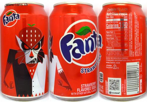 Contains No Juice Nutritio s Serv. Size Can anta Amount Per Serving Calories 1 0 %DRll Value 0% Total Fat 0g Sodium 45mg Total Carb. 45g Total Sugars 44g Incl. 44g Added Suc Protein Og 2% Fan 16% 39% Not a significant source sat. fat, trans fat, cholest., fiber, vit. D, calcium, iron and potas. ©2018 THE COCA-COLA COMPANY CONSUMER INFORMATION CALL 1-800-438-2653 www.fanta.com STRAWE 160 please recycle CAL ORIES CAM 5 mL FLAVORED SODA STRAWBERRY 2FL 0Z E smortiaber SCAN HERE FOR MORE FOOD INFORMATION a product of CARBONATED WATER, HIGH FRUCTOSE CORN SYRUP, NATURAL FLAVORS, CITRIC ACID, SODIUM BENZOATE (TO PROTECT TASTE). RED 40. CANNED UNDER AUTHORITY OF THE COCA-COLA COMPANY. ATLANTA, GA 30313 BYA MEMBER OF THE COCA-COLA BOTTLERS' ASSOCIATION, ATLANTA, GA 30327 927レ000067 CAFFEINE FREE 1654 8 250 SD 100% NATURAL FLAVORS 2018-00402