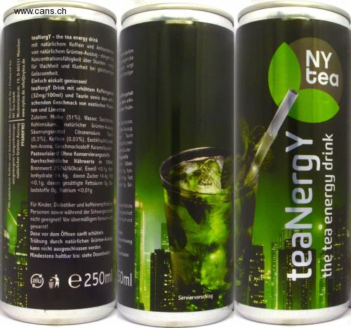 Best before: see bottom of the can great taste of exotic fruits teaNergY drink with increased caffeine content for alertness and clarity at the same time with natural caffeine and antioxidants (32mg / 100ml) and taurine as well as the erti- teaNergY-the tea energy drink Carbon dioxide, natural green tea extract Cloudiness due to natural green tea extract of natural green tea extract - steioert Ability to concentrate for hours. dantien gert the cares stepped down NY tea Serenity. Simply enjoy ice-cold! fineness the refreshment the fruit ten and lime Ingredients: whey (51%), water, sucrose Sicharose. extract, Dear lady Acidulants Citric acid, taurine (0.3%), caffeine (0.03%), exotic fruit lime. ten aroma, flavored caramel sugar ut-Limet- Pasteurized! Without preservative substances soffe relzucker Average nutritional values in 100ml Energy value 257kJ / 60kcal, protein <0.1g. Feces 100ml: lenhydrates 14.4g, of which sugar 14.4g. Fat 1g. Koh- 449. Fat <0.1g, of which saturated fatty acids Og. Ba- 0g Bal- en og. load materials Og, sodium <0.01g For children, diabetics and those sensitive to caffeine People as well as during pregnancy sensitive membership sum will not suitable! From excessive consumption wit warned! Shake the can gently before opening. Cloudiness due to natural green tea tea can not be excluded. senboden E 250ml Oml (aluminum) Serving suggestion With natural caffeine and antioxidants Manufactured for: balanced long-term energy NY Tea GmbH natural green tea extract Westenriederstr. 19, D-80331 Munich DEPENDENT-FREE www.nytea.de info@nytea.de teaNergY the tea energy drink