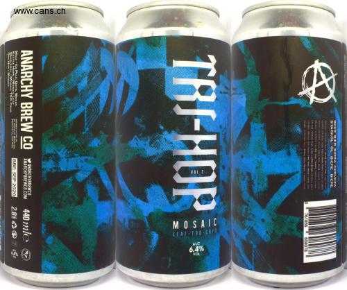 LEAF-T90-CRYO ALC 6.4% VOL ALC 6.4% YOL 10H ANG BEER BIER BIRRA CERVE ZA STARKÖL ÖL BIERE BIERE ENGLISH CONTAINS: Water, Wheat. Barley, Oats, Hops, Yeast ESPANA: CONTIENE Agua Trigo, Cebada Avena, Lupulo, Levadura ITALIA: CONTIENE: Acqua, Grano, Orzo, Avená, Lupp olo, I ievito FRANCE CONTIENT Eau, Bie, Orge, FAvoine, Houbion, Levure ΕΑΛΑΔΑ: ΠΕΡΙΕΧEΙt Νερο σιτάρι, κριθάρι, βρμη λυκίσκος, μαγια SVERIGE: INNEHALLER: Vatten, Vete, Korn, Havre, Hiumie, Jäst 761856 608078 SUCMI SISALTAA: Vesi, Vehna, Ohra, Kaura, Humala, Hnva TRI-HOP ANARCHY BREW CO YANARCHYBREWCO ANARCHYBREWCO.COM 440 mle O 2.85 MALT-Ex PALE, OATS, WHEAT. BREWED IN THE UK PANT BY ANARCHY BREW Co, NEWCASTLE, NE6 4NG BBE: SEP 2020 KETTLE HOPS-MOSAIC LEAF WHIRLP OOL-M OSAIC T 90, CRYO DRY HOP-MOSAIC