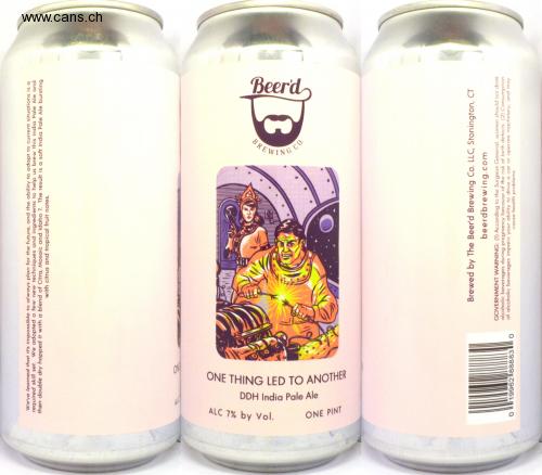 ONE THING LED TO ANOTHER Beerd BREWING CO. ON DDH India Pale Ale ALC 7% by Vol. ONE PINT We've learned that it's impossible to always plan for the future, and the ability to adapt to current situations is a required skill set. We adopted a few new techniques and ingredients to help us brew this India Pale Ale and then double dry hopped it with a blend of Citra, Mosaic and Idaho 7. The result is a soft India Pale Ale bursting with citrus and tropical fruit notes. Brewed by The Beer'd Brewing Co. LLC, Stonington, CT beerdbrewing.com GOVERNMENT WARNING: (1) According to the Surgeon General, women should not drink alcoholic beverages during pregnancy because of the risk of birth defects. (2) Consumption of alcoholic beverages impairs your ability to drive a car or operate machinery, and may cause health problems. o 19962l88883