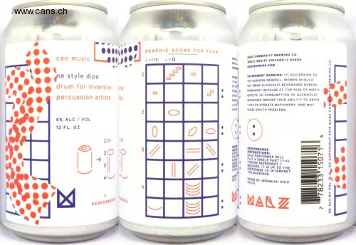 GRAPHIC SCORE FOR FOUR can music MARZ COMMUNITY BREWING Co. 3630 S IRON ST CHICAGO IL 60609 J = 110 J = 0 MARL N MARZI MARZBREWING.COM ne style dipa drum for inventive tive 1 GOVERNMENT WARNING: (1) ACCORDING TO GOVEN THE SN NOT DA PREONI THE SURGEON GENERAL, WOMEN SHOULD NOT DRINK ALCOHOLIC BEVERAGES DURING PREGNANCY BECAUSE OF THE RISK OF BIRTH percussion artists ists DEFECT DEFECTS. (2) CONSUMPTION OF ALCOHOLIC BEVENE BEVERAGES IMPAIRS YOUR ABILITY TO DRIVE A CAR O A CAR OR OPERATE MACHINERY, AND MAY CAUSE CAUSE HEALTH PROBLEMS. 8% ALC / VVOL 12 FL. OZ 이。 10 10 PERFON INSTRI EACH PLAYA I BOIE MEAS PERFO THE 3 20 10 PERFORMANCE INSTRUCTIONS: EACH PERFORMER WILL PLAY A SINGLE PART (1-4). 8 BOXES REPRESENT 1 MEASURE. IT IS UP TO THE PERFORMER TO INTERPRET THE MARKINGS. 3 SCONE 02014 SCORE BY JEREMIAH CHIU 02018 4 ORMERS MADZ PERFORMERS ㅇ 0000 78233 1507 1" 6 8% ALC BY VOL 12 FL OZ COPYRIGHT 2018 MARZ COMMUNITY BREWING co.