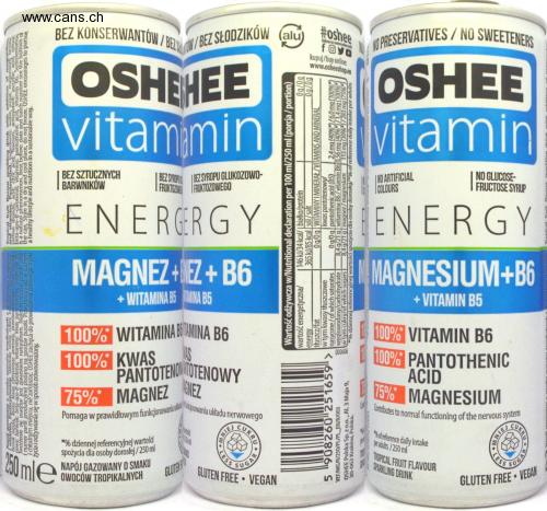 PANTOTENDIOTENE NO MAINTENANCE / BED It helps in the proper functioning of the nervous system Contributes to normal functioning of the nervous system NO PRESERVANTS / NO / NO SWEETENERS NO PRESERVATIVES / NO SWEETENERS (alu) #oshee follow us www.ohent OSHEE vitamin buy / buy online: www.osheeshop.e OSHEHEE vitammin WITHOUT ARTIFICIALS DYES SIRP-FREE 1 WITHOUT GLUCOSE SYRUP- | FRUKTOZINE FRUCTOZOWOWY NO ARTIFICIAL COLORS NO GLUCOSE- FRUCTOSE SYRUP ENERGRGY ENERGY MAGNESIUM + EZ + B6 MAGNESIUM + B6 + VITAMIN B5 + VITAMIN B5 INA B5 100% VITAMIN B AMINA B6 100% ACID 100% VITAMIN B6 100% PANTOTHENIC ACID 75% MAGNESIUM 000606 75% MAGNESIUM SUGAR Untributes to normal functioning of the nervouS system invoking the nervous system % of reference daily Intake peradults / 250 ml TROPICAL FRUIT FLAVOR SPARKLING DRINK LOESS *% of the daily reference value consumption for an adult / 250 ml A FLAVORED CARBONATED DRINK TROPICAL FRUITS RES 60 ml SUGAR GLUTEN FREE VEGAN GLUTENR GLUTEN FREE VEGAN / vitamins, Pasteurized. Ingredients: water, magnesium mesate sugar, cwu- carbon monoxide, ytrinic acid; aromas, antioxidant acid asko above; dye: beta-apo-8-carotenal; vitamins: pantothenic acid, vitamin B6. The formation of deposits is a natural phenomenon. Best before: date The production batch number is shown on the bottom of the can. Store dry įcholdnym miėjscų, do not freeze. OSHEE 'encourages a healthy trýbu live and eat in a balanced way. TropicaE fruit lavor Fparkling drink with addition of magnesium and vitamins. Pasteurized. Ingredients: Water, sugar, magnesium arbon dioxide, acid; citric acid; Tlavors, antioxidant: ascorbic add; color beta-apo-8-carotenal; vitamins: pantothenic acid, vitamin B6. Sedimentation is a natural phenomenon. Best before: date and batch number see the bottom the can. Store in a dry and cool place, do not freeze. OSHEE encourages to pursue a healthy lifestyle and nutrition in a sustainable way. Nw.LES SUGAR Nutritional value w / Nutritional declaration per 100 ml / 250 ml (portion / portion) energy value/ energy thuszcz / fat 146 kJ / 34 kcal / | protein / protein Og / 0g 5 908260 251659> including fatty acids VEF / MG / R / 250 / PL / PL EN / R / 003 OSHEE Polska Sp. Zo.0., Aleja 3 Maja 9, 30-062 Krakow, Poland. 365 kJ / 85 kcal salt / salt Og / 0g VITAMINYI MINERAŁ / VITAMINS AND MINERAL pantothenic acid/ Og / 0g pantothenicacid (B5) 8.4g / 21g vitamin B6 / vitamin B6 0.56 m2 (40% *) / 1.4 mg (100% *) 21g magnesium / magnesium 24mg (40% *) / 6.0mg (100% *) saturated / of which saturates carbohydrates / carbohydrate including sugars / of which sugars *% of reference daily intake per adult / 96 of reference daily intake per adults 113 mg (30%) / 283 mg (75% *)