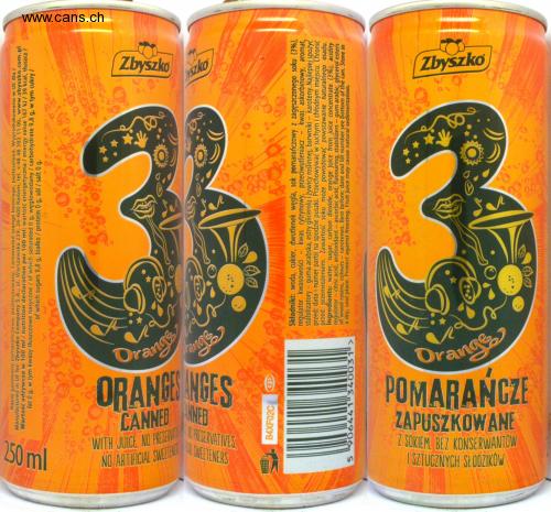 WITH JUICE, NO PRESER ENATIVES, NO ARTIFICIAL SWEETWEETENERS Zbyszko szko Zbyszko Orange angg ORANGE NGES Drang ANEB CANNED POMARANCZE ZAPUSZKOWANE Z SOKIEM, BEZ KONSERWANTOW I SZTUCZNYCH SŁODZIKÓW 250ml Napój gazowany pomarańczowy, pasteryzowany. Carbonated orange beverage, pasteurized. Wyprodukowano w UE dla / Manufactured in UE for: Zbyszko Company S.A., ul. Warszawska 239, 26-600 Radom, tel. +48 48 383 11 00, www.zbyszko.com.pl Wartość odżywcza w 100 ml / nutrition declaration per 100 ml: wartość energetyczna / energy value 167 kJ/39 kcal, tłuszcz/ fat 0 g, w tym kwasy tłuszczowe nasycone / of which saturated 0 g, węglowodany/carbohydrate 9,8 g, w tym cukry/ of which sugars 9,8 g, białko / protein 0 g, sól / salt 0 g. B4XF02C Składniki: woda, cukier, dwutlenek węgla, sok pemarańczowy z zagęszczonego soku (3%), regulator kwasowości stabilizatory-guma arabska, estry glicerolu i żywicy roślinnej, barwniki – karoteny.Najlepiej spożyć przed: data i numer partii na spodzie puszki. Przechowywać w suchym i chłodnym mijscu. Chronić przed przemrożeniem. Zawartość soku może powodować powstawanie naturalnego osadu. Ingredients: water, sugar, carbon dioxide, orange juice from juice concentrate (3%), acidity regulator - citric acid, antioxidant- ascorbic acid, flavouring, stabiližers - gum arabic, glycerol esters of wood rosins, colours a dry, cool place. Protect against freezing. Fruit juice may cause natural sedimentation. kwas cytrynowy, przeciwutleniacz-kwas askorbinowy, aromat, - carotenes. Best before: date and lot number see bottom of the can. Store in 5. 77906