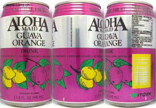 IGREDIE,18 ANATER, SUGAR taAVA PUREE ORANGE TR CENTRATE GITRICAGO NAUEU FLAVOR ASCORO FD8G RED NO, 40 AND FOR LOW NO 6 NUTRITIONAL INFORMATION SERVING SIZE..t 115 FL 02 SERVING PER CONTAINER ....1 CALORIES PROTEIN CARBOHYDRATES FAT SODIUM PERCENT U.S. RECOMMENDED DAILY ALLOWANCE (U.S. RDA): VITAMIN C. *CONTAINS LESS THAN 2% OF THE U.S. RDA OF PROTEIN, VITAMIN A THIAMINE, RIBOFLAVIN, NIACIN, CALCIUM, IRON. CONTAINS: NO LESS THAN 13% FRUIT JUICES. NATCRAL FRUIL 11.5 FLLOZ.(340 mL) NATUR AL FRUIT VHON ALOHA A AOHA 160 .16 ..386 ....06 ..O MG MAID GUAVA ORANGE E MAL MAID GUIUAVA ORARANGE . 100% DR RINK DRINK 100% RDA VITAMIN C NO PRESERVATIVES NON CARGON HON CARBONATED 100% RDA VITAMIN C NO PRESERVNATIVES NON CARBONATED 00 0. OUCED IN HAWAII PRODUCEST ITO EN PRODUCED IN HAWAII 11.5 FL. OZ.(340 mL) CHILL AND SHAKE WELL BEFORE SERVING 73366"11816 HONOLUULL HAWAIL9689