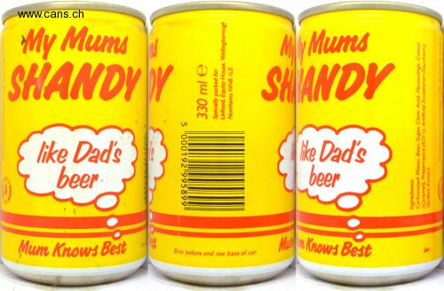 Best before end see base of can My Mums SHANDYW M Mums SHIANDY like Dad's beer Mke Dad's beer Mum Knows Best Mu Knows Best ow ou 5 000192 995899 330ml e Specially packed for Linfood, Equity House, Wellingborough. Northants NN8 ILE. Ingredients: Carbonated Water, Beer, Sugar, Citric Acid, Flavourings, Colour (Caramel), Preservative (E211), Artificial Sweetener (Saccharin). Quillaia Extract.