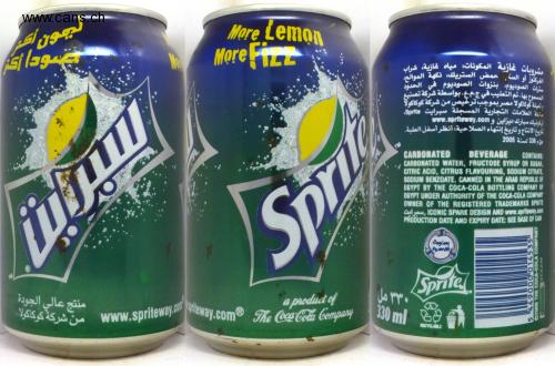 مشروبات غازية المكونات: مياه غازية، شراب الفركتوز أو السة حمض الستريلك، نكهة الموالح، المسموح بها، تم التعليب في جمع. بواسطة شركة تصنيع More Lemon More Fizz stlagr و ميلة کوكاكولا مصر بموجب ترخيص من شركة كوكاكوة مالعة العلامات التجارية المسجلة سبرایت 8prte، www.spritewsy.com i تارخ الإنتاج و تاريخ إنتهاء الصلاحية: أنظرأسفل العلبة. 2005 2 336 par TM CARBONATED CARBONATED WATER, FRUCTOSE SYRUP OR SUGAR, CITRIC ACID, CITRUS FLAVOURING, SODIUM CITRATE, SODIUM BENZOATE. CANNED IN THE ARAB REPUBLIC OF EGYPT BY THE COCA-COLA BOTTLING COMPANY OF EGYPT UNDER AUTHORITY OF THE COCA-COLA COMPANY OWNER OF THE REGISTERED TRADEMARKS SPRITE Cl, ICONIC SPARK DESIGN AND www.spriteway.com PRODUCTION DATE AND EXPIRY DATE: SEE BABE OF CAM BEVERAGE CONTAINS: Sprike Saging Sprite منتج عالي الجودة من شركة كوكاكولا a product of Yors,sas w® he Coca-Cola Company www.spriteway. ieway.com 330ml RESYCLABLE C2009 THE COCA-COLA COMPANY REXAM