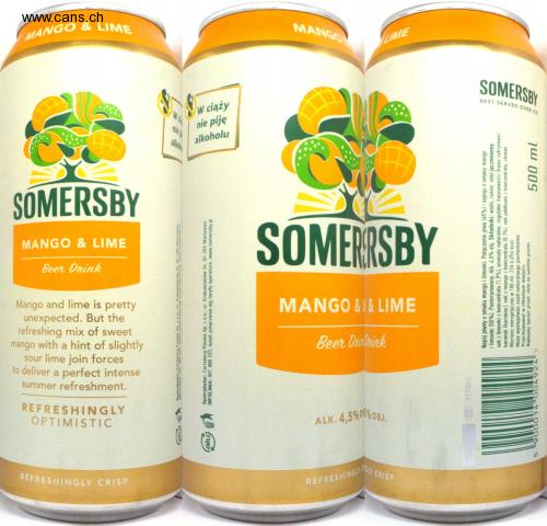MANGO & LIME REFRESHINGLY CRISP MANGO LIME SOMERSBY BEST SERVED OVER ICE Pregnant Toilets I do not drink not P alcohol alcohol SOMERSBY SOMERRSBY MANGO & LIME Beer Drink MANGO & U & LIME Mango and lime is pretty unexpected. But the refreshing mix of sweet mango with a hint of slightly sour lime join forces to deliver a perfect intense summer refreshment. Beer Dnishink REFRESHINGLY OPTIMISTIC KU. 4.5% 0% 08J CRISP REFRESHINGLY Y Distributor: Cartsberg Polska Seo ut. Krakowiakow 34, 02-255 Warsaw (alu) Distributor: Carlsberg Poiska Sp. z 0.0., ul. Krakowiaków 34, 02-255 Warsaw. HOTLINE: 801 888 333, connection cost according to the operator's tariff. www.somersby.pl @ 317805 Beer drink with mango and lime flavor. A combination of beer (45%) and a drink with a mango flavor and limes (55%). Pasteurized. Alk. 4.5 vol.% Pktadniki: water, sugar, barley steak. lime juice from concentrate (1.9%). natural flavors, acidity regulator (citric acid. color (carmines), mango juice from concentrate (0.1%), apple juice from concentrate, hops Energy value in 100 ml: 226 kJ / 54 kcal. There may be sediment of natural origin. Store in a cool place. Best before: date on the bottom of the can. 700ZL0006