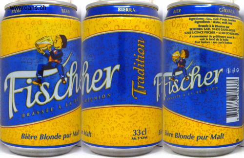 Ingredients: Water, barley mash, hops 0 B Pure Malt Blond Beer BEER BEER BIERRA BEER CERVEZA D.0.0 a. Ingredients: Cau, barley mast, hops Ingredients: Water, malt, hop Brewed in Reunion by SOREBRA SARI. 97450 SAINT-LOUIS UNDER LICENSE FISCHER 67300 SCHILTIGHEM Best before: 0 see the bottom of the box Best before: see can's bottom EGO Fiscmer acher 10 00 MEETING BRASSEE IN LAREUNION Pure Blonde Beer Wrong Malt 33cl 0. ière: Pure Malt Blonde Alc. 5% Vol. Tradition C 能