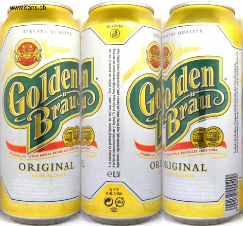 gold medal in compoterstan extra ustere of milk that beer International Testing & C Mones Brussels. A recognition inus alaetoer pesle years the same quality of exceptional Golden Brast kept over the same years WINNER of the GOD SPECIAL QUALITY AND Alc.4.8% Vol. SPECIAL QUAL ITY specific Goldenn Brane cadence Brauc SELECTION SELECTION choose WORLD WORLD 2006 2003 Cauliflower 2006 XELLES 加 03-2006 2003 BRUSSELS 2006 ORUXELLES of the GOLD GOLD MEDAL BRUSSELS 2003-2006 ORIGINAL ORORIGINAL BLOND BEER and 0.51 BE BLOND BEER In 2006, Golden Brat cal Brussels. I will recognize her mpetition organized by Insti d World Selection Qualities re in addition to fantuhi that beer it's those years and exceptional cases Ep 11 ° P ST.NR.5 / 2006 (alu cP WORLD NOLLOT To be consumed preferably before: see base of the can. To be kept away from high temperatures and freezing. Ingredients / Ingredients: water, barley malt, corn, barley, hops / water, malted barley, corn, barley, hops. Produced and distributed by: / Produced and distributed by: Brau Union România S.A., member of the Heineken Group, Bucharest, Str. Osiei Nr. 18-34 www.goldenbrau.ro