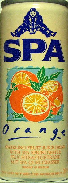 SPA orange SPARKLING FRUIT JUICE DRINK WITH SPA SPRINGWATER FRUIT JUICE DRINK WITH SPA SPRING WATER PRODUCT OF BELGIUM rORE END MINIMUM PAINTABLE DS ENDET
