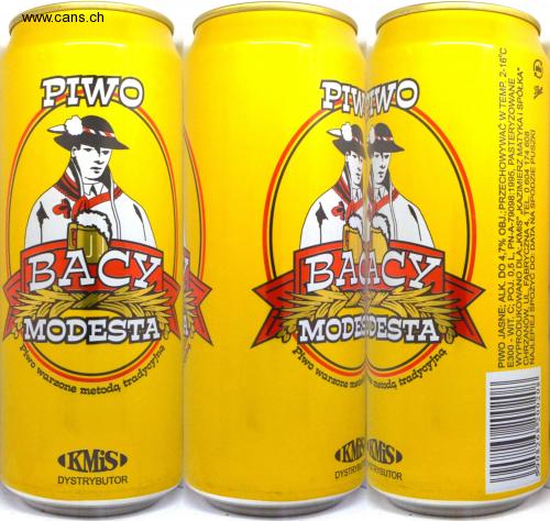 Piwo warzon PIWO PHWO PAN BACY BACCY MODESTA MODESDESTA Piwo warzone tradycyjna meto metoda (KMIS KI AS STRYBUTOR DYSTRYBU DYSTRYBUTOR PIWO JASNE; ALK. DO 4,7% OBJ.;PRZECHOWYWAĆ W TEMP. 2-16°C E300 - WIT. C; POJ. 0,5 L, PN-A-79098:1995, PASTERYZOWANE WYPRODUKÓWANO DLA:„KMIS" „KAZIMIERZ MATYKA I SPÓŁKA" CHRZAN ÓW, UL, FABRYCZNA 4, TEL. 0 604 174 608 NAJLEPIEJ SPOŻY Ć DO: DATA NA SPODZIE PUSZKI 800000 TIL897 06