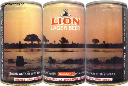 RASSEES PAR LA BRASSERIE OCB 8 CAPE. EMB 59650 South African Wild Life sed Life series. Number 9 of a colledcollection of 14 studies. LTD . B. O. C. LION LAGER BEER BIERES 33cl. BRASSE OHLSSON'S CAPE BREWERIES LTD., 3 MAIN RD., NEWLANDS, 7700, CAPE, SOUTH AFRICA Hippopotamus Golden Go od.. - Rich with Flav our