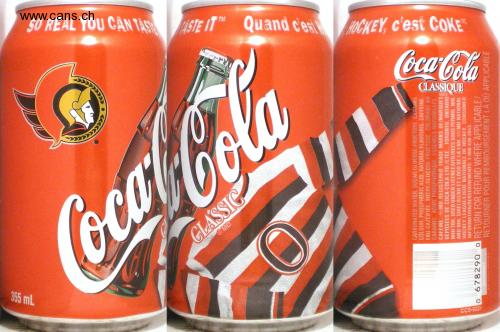 SO REAL YOU CAN TASHSTE IT Quand c'es HOCKEY, C'est COKE Coca-Cola CLASSIQUE Coca-Cola GLASSIC OMD 355 mL CCS-9221 CARBONATED WATER SUGAR GLUCOSE FRUCTOSE ARANEL COLOUR, PHOSPHORIC ACID, NATURAL FLAVOURS. CAFFEINE EAU GAZEIFIE SUCRE/GLUCOSE FRUCTOSE COL ORANT AU CARAMEL ACIODE PHOSPHORIQUE ESSENCES NATURELLES CAFEINE /MD REGISTERED TRADE MARKS OF/MARQUES DEPOSEES DE COCA COLA LTD./LTEE, TORONTO, ONTARIO M4H 188, USED UNDER LICENCE/UTILISEES SOUS PERMIS. NHI AND NHL SHIELD/LNH ET LOGO DE LA LNH: MD NATIONAL HOCKEY LEAGUE/LIGUE NATIONALE DE HOCKEY CONSUMER INFORMATION/RENSEIGNEMENTS 1-800 438-2653. 0 678290O RETURN FOR REFUND WHERE APPLICABLE/ RETOURNER POUR REMBOURSEMENT LA OU APPLICABLE