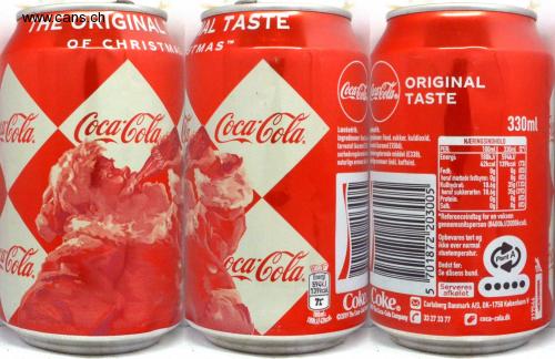 CON Loke. OF CHRISTMA TMAS THE ORIGINAL AL TASTE OF CHRISTMATMAS TM Coca-CoaCola ORIGINAL TASTE Cala. Coca-ColaCoca-Col. 330ml Soft drink. Ingredients lnt pleser: Water, sugar, carbon dioxide, dye (baran ret Baramel E150d), acidity regulator (E338), natural arons in ie armaments (incl. caffeine). ethics PER: Energy: NUTRITIONAL CONTENT 100ml 330ml C) 180KJ / 594KJ / 42kcal 139kcal (7) Cool And And (0) And (02) 35g (132) 35g (39%) And of which saturated fatty acids: 0g Carbohydrate 10.6g of which sugars: 10.6g Protein: Salt And (02) And And (0X) * Reference intake for an adult average person (8400KJ / 2000kcal). N Store tert and not above normal C0o room temperature. ca-Cola Pant A Best before: See the bottom of the can. 830ml Energy 594KJ 139kcal Served cooled E CON Coke Carlsberg Danmark A / S. DK-1750 Kebenhavn V 33 27 33 77 Coca-Cola Company 100ml: coca-cola.dk OKJ / 2kc02019 The Ca- 5 701872 203005 317544