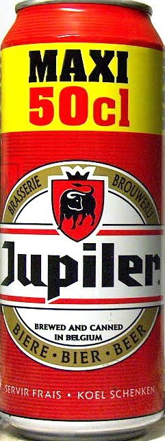 MAXI 50cl BROUWER Jupiler BEER •BIER BIERE BREWED AND CANNED IN BELGIUM SERVIR FRAIS KOEL SCHENKEN BRASSERIE