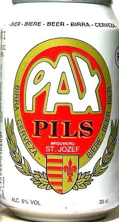 SIER - BIERE - BEER - BIRRA - BEER. PAX PILS BROUWERIJ ST. JOZEF LAC. 5% VOL 33 ol. BIRRA BEER BIER BEER BIERE