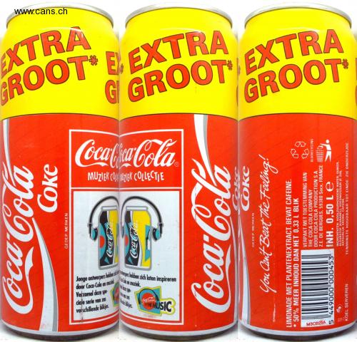 XTRA ROOT* E EXTRA G GROOT EXTRA GROOT Coca-CoaCola MUZIĘK COU UIEK COLLECTIE door Coca-Cola en muit Verzamel deze spe- s heben zich laten inspireren Cle en muziek. 265 ciale serie van zes Coca-Cola S THE EMUSIC MUSIC verschillende blikjes. M3CB25A n 221-3, Coke GEDEP. MERKEN Coke GEDEP MERKEN You Cint Beat The Filing! LIMONADE MET PLANTENEXTRACT. BEVAT CAFEINE. * 50% MEER INHOUD DAN HET 0,33 L BLIK VERPAKT MET TOESTEMMING VAN THE COCA COLA COMPANY DOOR COCA COLA PRODUCTION S.A. Z.E. DE BERGUES, 59380 Socx, FRANCE BLIKRECYCLING INH. 0,50 L e INGREDIENTEN: KOOLZUURHOUDEND WATER, SUIKER, KLEURSTOF (KARAMEL), VOEDINGSZUUR (E 338), NATUURLIJK AROMA, CAFEINE. KOEL SERVEREN TENMINSTE HOUDBAAR TOT EINDE: ZIE ONDERZIJDE.