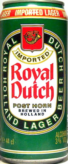 AGER IMPORTED LAGER MPORTED Royal Dutch POST HORN BREWED IN HOLLAND LAGER ALCOH e 44 cl 3% V BUTCH ONVIT 0H R O Y BEER